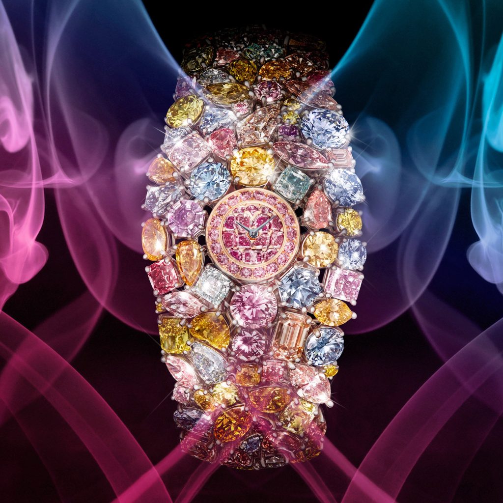 The Graff Diamonds Hallucination, valued at $55 million, is a kaleidoscope of rare-colored diamonds set into a platinum bracelet. It is not just a watch; it’s a testament to Graff’s boundless ambition.